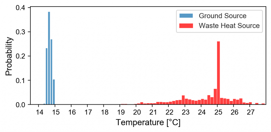 - The heat sources are provided by low-temperature waste heat taken from the cooling circuit of a steel mill (immediately before its connection with cooling towers) and by aquifer wells at a temperature of about 15°C.